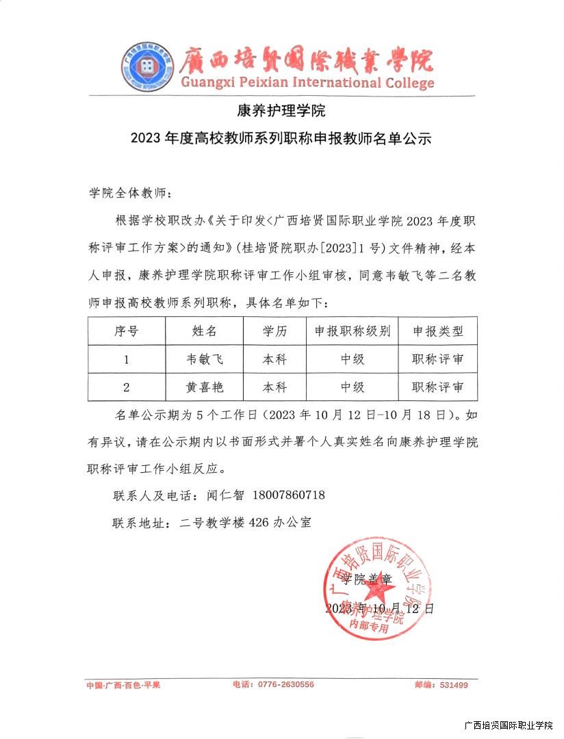 .康养护理学院2023年度高校教师系列职称申报教师名单公示