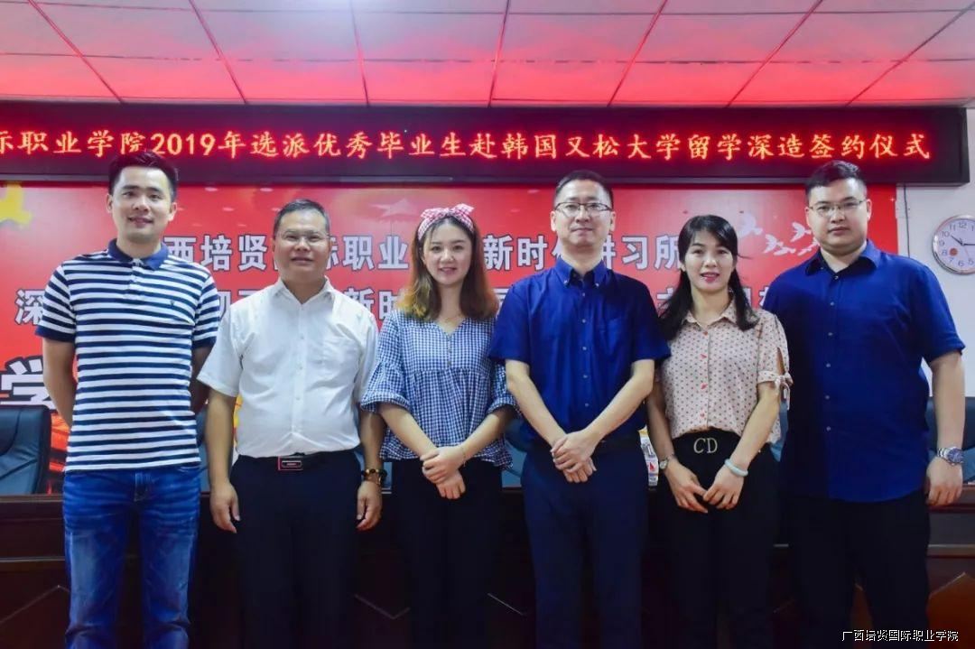 2019年8月21日上午10点😽,我校在2号教学楼122讲习所隆重举行2019年选派优秀毕业生赴韩国又松大学留学深造签约仪式,这是我校人才培养发展中的一件大事,也是我校与国外教育资源结合的重要推动力👨🏿🦱。出席本次签约仪式的领导有:我校副校长于灏洋🌘、副校长李锡武🫃🏽、培训部曾妮副主任、国际交流中心覃严生副主任以及优秀毕业生钟柳芳同学,和相关部门负责人🕝、在岗教职工🧎🏻♀️➡️。
