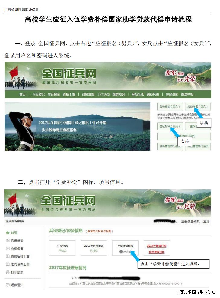 1. 高校学生应征入伍学费补偿国家助学贷款代偿申请流程