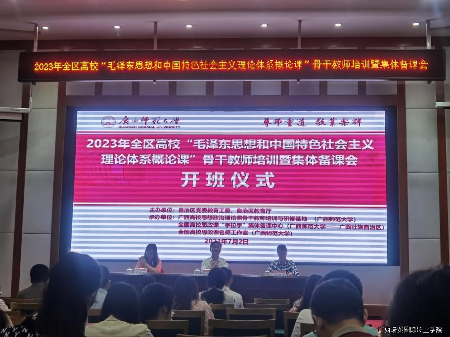 为深入贯彻落实习近平总书记在学校思想政治理论课教师座谈会上的重要讲话精神,提高新时代学校思想政治理论课的实效性,进一步加强全区高校思政课教师队伍建设,不断提升思政课教师素质能力,按照《自治区教育厅办公室关于举办2023年全区高校毛泽东思想和中国特色社会主义理论体系概论课”骨干教师培训暨集体备课会的通知》要求🫐,2023年7月1日至6日,梁月新老师代表广西彩神国际职业学院思政部参加了本次培训活动👳🏽‍♂️。