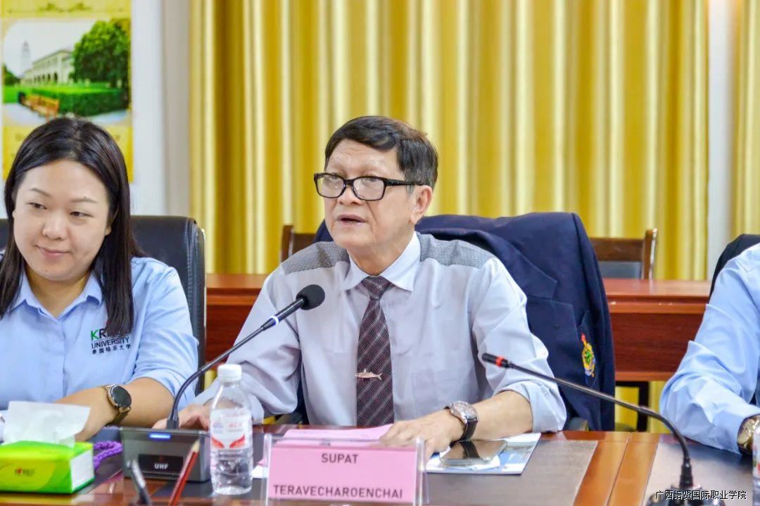 随后,学校与来访代表团于一教105会议室召开合作洽谈会议⏩,泰国格乐大学高级董事👩‍🦰、副校长SUPAT TERAVECHAROENCHAI(素帕校长),国际交流处副处长袁增,翻译莫雅智👍🏽💽,教务负责人农梅芳,新加坡南洋管理学院酒店管理学院院长邱剑辉👩🏽‍🦰🕺🏻,广西国际事务中心副主任浦闯,留学顾问袁玉豪,我校于灏洋,潘霜梅和覃严生共同参加了此次会议🎆,会议由邓祯瑜老师主持🐖。
