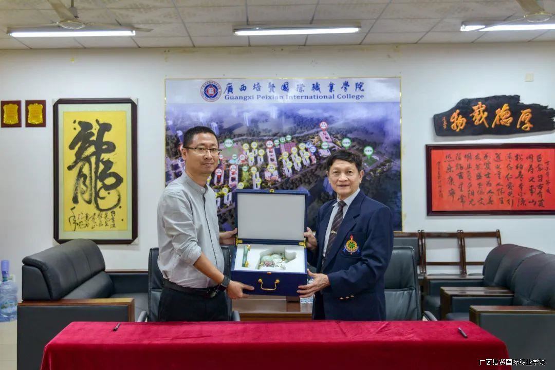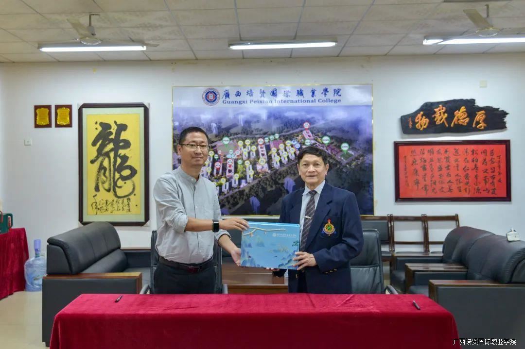 ▲与泰国格乐大学签署框架合作协议并互送纪念品