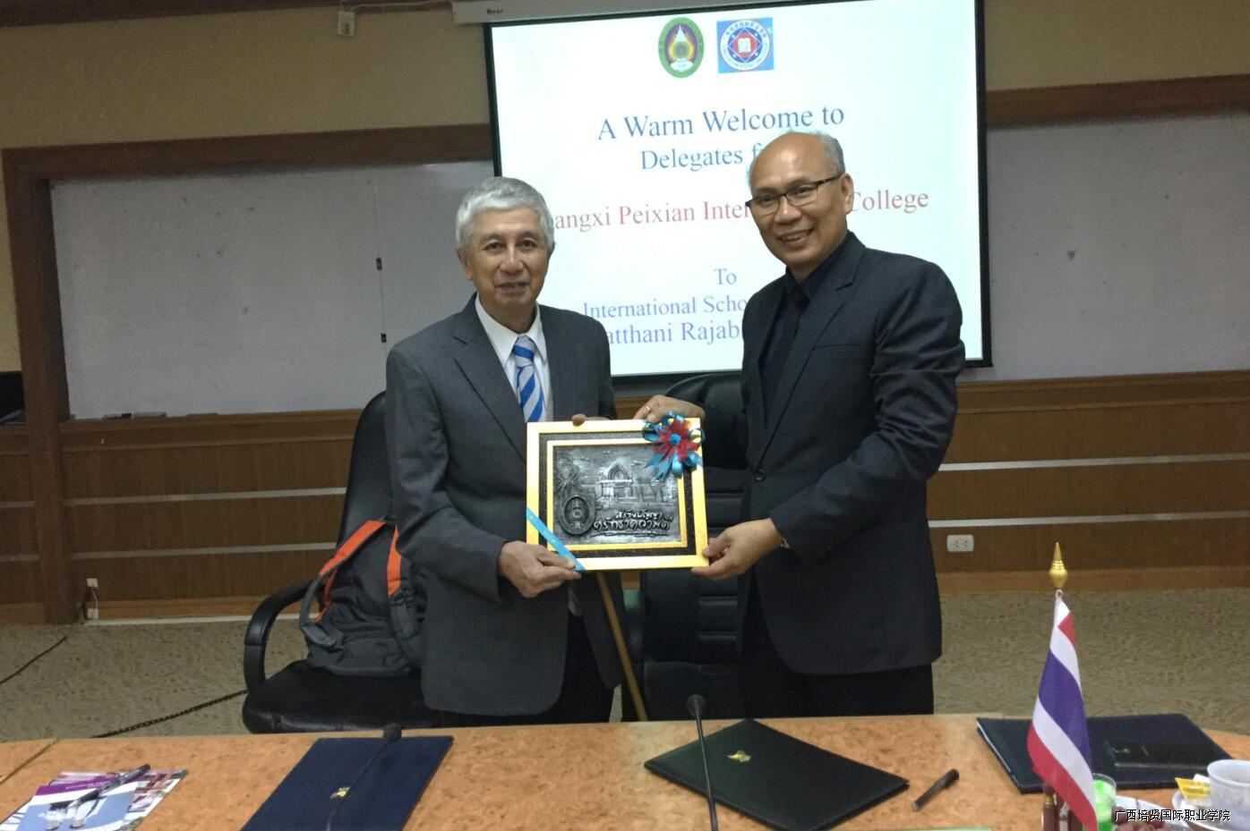何厚煌博士(左)代表学校接受泰国素叻他尼皇家大学赠礼