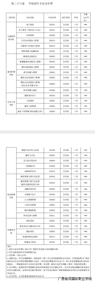 第二十五条 学生学费、住宿费的收费标准根据《广西壮族自治区民办学校收费管理暂行办法》实行市场调节价和政府指导价管理↙️。我校的学费及住宿费标准如下:
