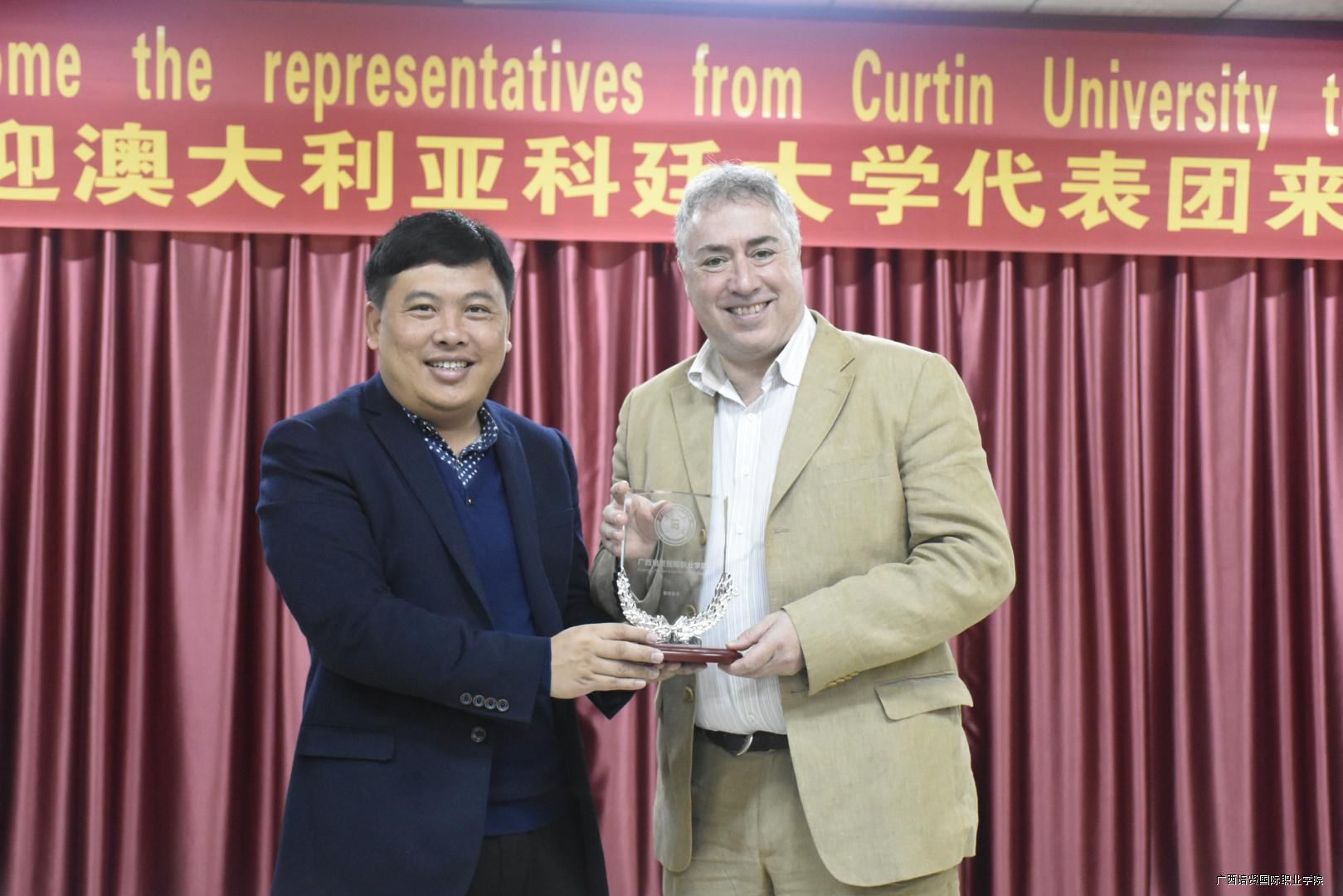 2017年11月30号上午,澳大利亚科廷大学副校长Simon Winetroube🏊🚮、国际董事Ruth Ong🙆♂️、国际市场营销经理Iby Moh、运营经理Joseph Tan一行4人代表澳大利亚科廷大学来访广西彩神国际职业学院,并受到广西彩神国际职业学院副院长黄勇学、副院长于灏洋🧑🏻🦰、国际交流中心负责人梁慈等人的热情接待。