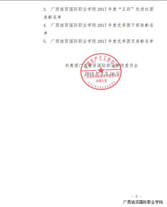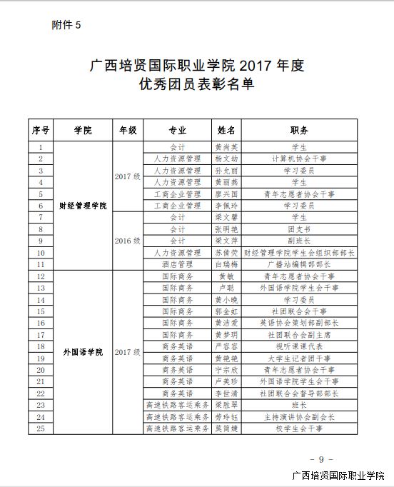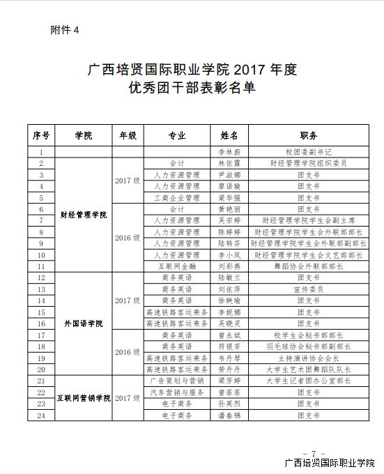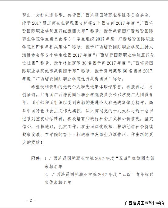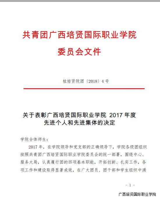 关于表彰广西彩神国际职业学院 2017年度先进个人和先进集体的决定