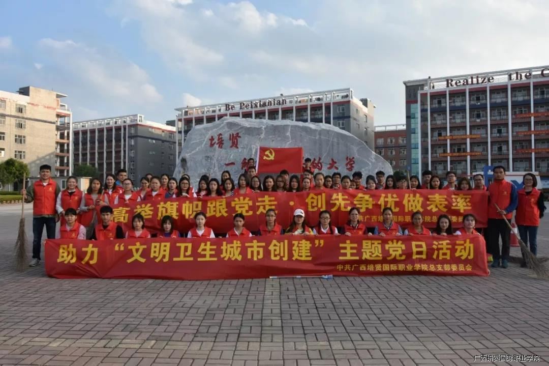 中共广西彩神国际职业学院总支部委员会为了加强对党员的教育✡️,牢固树立党员的服务意识,于2018年12月5日,组织60余入党积极分子和党员志愿者开展“助力文明卫生城市创建”主题党日活动🙅🏽‍♂️。我院全体党员和积极分子积极响应此次活动。