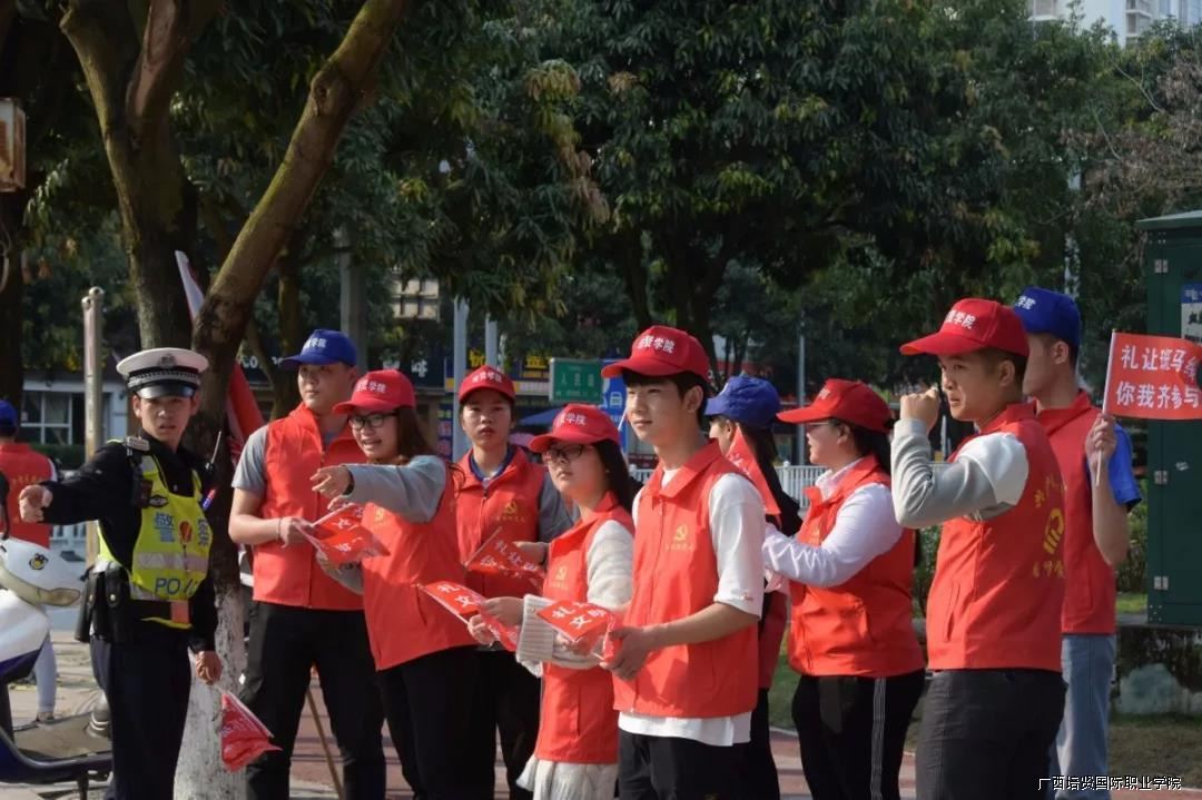 为贯彻落实习近平新时代中国特色社会主义思想和中共十九大精神,营造学雷锋志愿服务气氛,培育和践行社会主义核心价值观,共同营造文明和谐的社会环境👩‍🚒,2019年3月20日🙇🏻,我校与平果县公安局交通警察大队在平果文化广场开展“文明出行”实践活动。我校外国语学院分团委副书记张世堂老师带领外国语学院学生会的成员参加此次活动。
