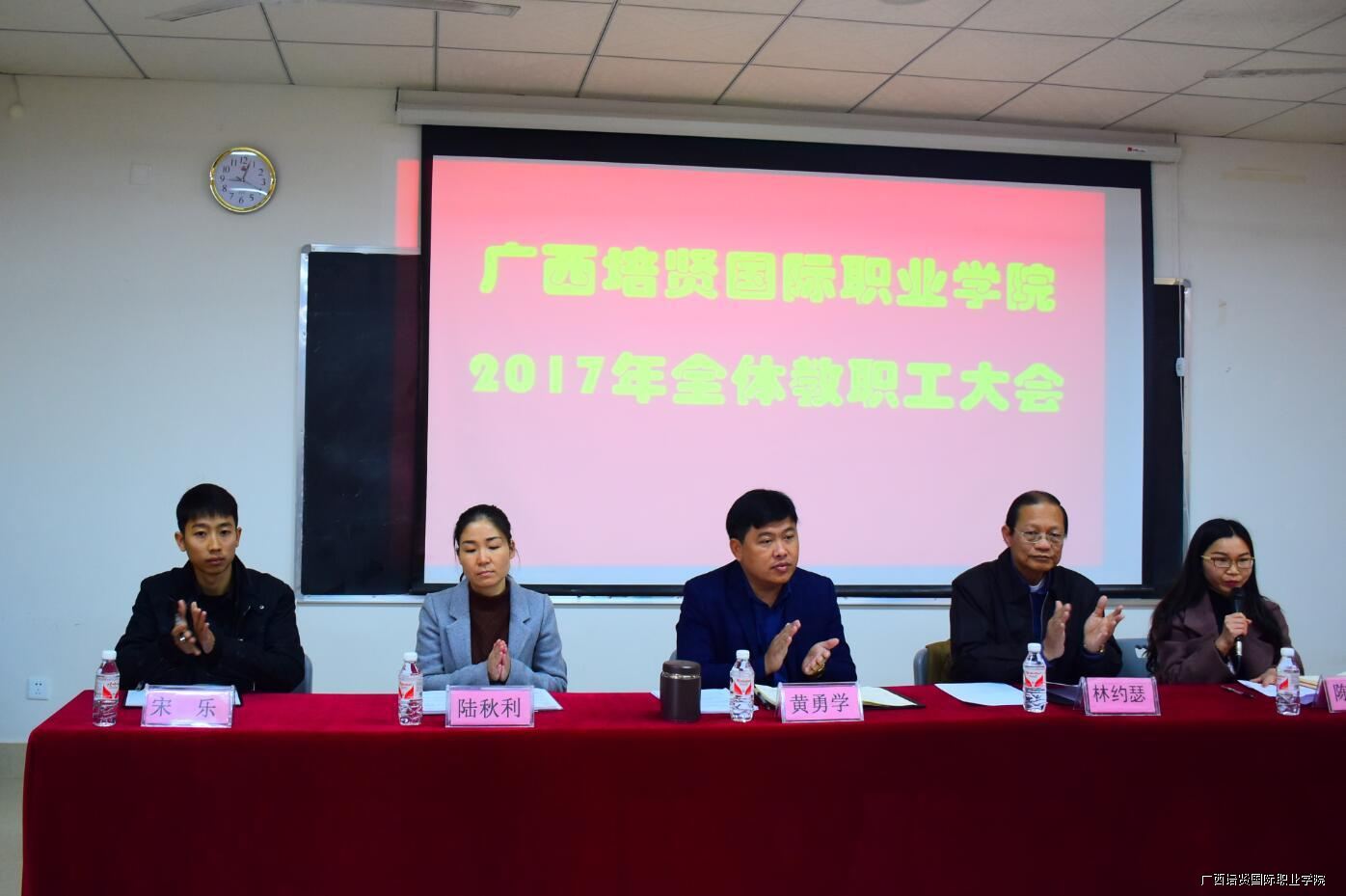 为全部贯彻落实自治区教育厅2017年全区教育工作会议精神🌷,切实做好我院新学期的各项工作,2月28日上午🙍🏽‍♂️🫸,我校在学术报告厅召开2017全体教职工大会。学院副院长黄勇学👂🏽、副院长陆秋利🤽🏻‍♀️🧷、各二级学院负责人出席会议🚳,全体教职工参加。