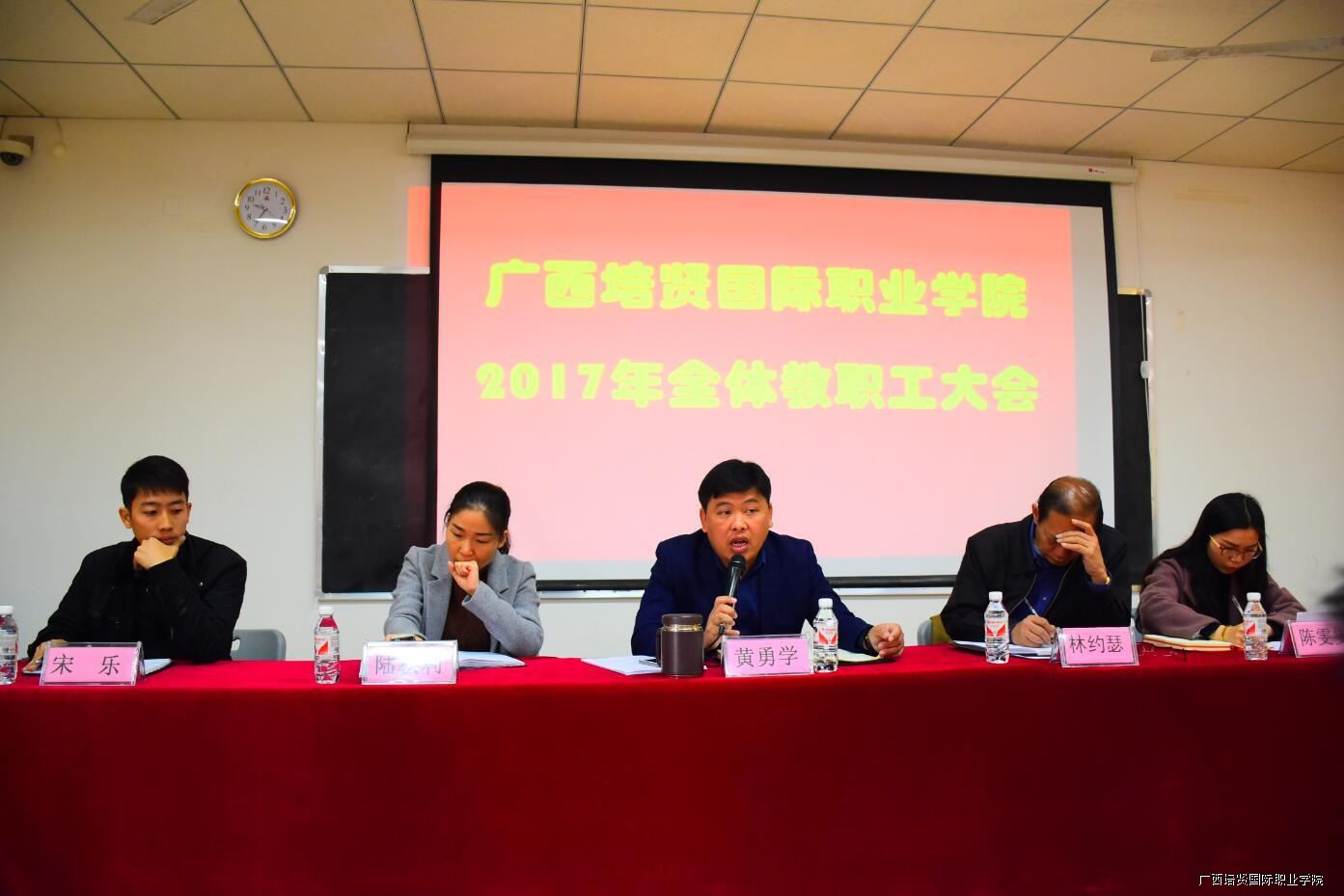 随后,学院副院长黄勇学向大家传达了2017年全区教育工作会议的精神,对高职院校相关的会议内容进行解读。他表示🧑🏽‍🎨🅰️,2017年,自治区教育厅将更加重视民办教育发展👨🏿‍✈️,希望我校师生紧跟形势🧑🏼‍🔬,把握机遇,以更积极的态度继续前进。