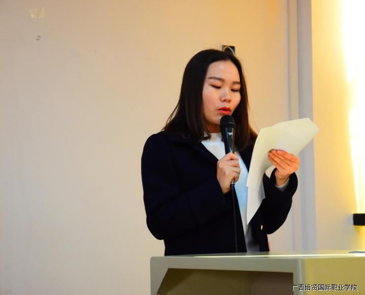 思政部覃素媛老师宣读《关于举办2016年秋季学期入党积极分子培训班的通知》