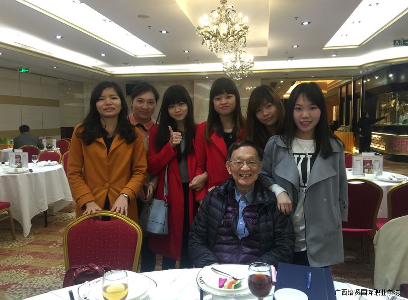 我院董事长何厚煌博士、副董事长区寿本博士与佳宁娜集团顶岗实习的学生合影