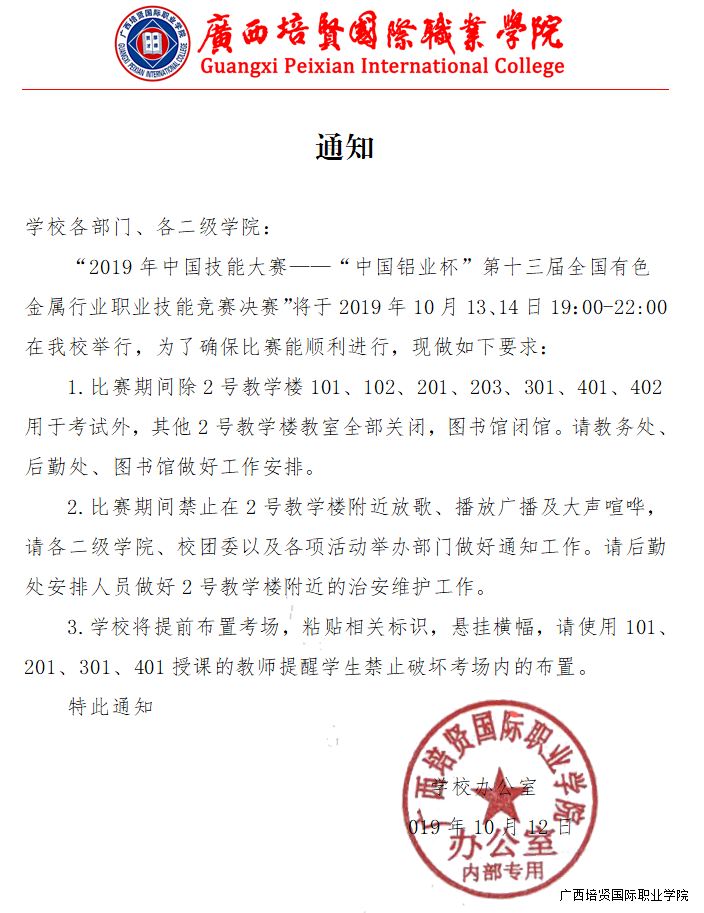 关于“中国铝业杯”第十三届全国有色金属行业职业技能竞赛决赛在我校举行的通知