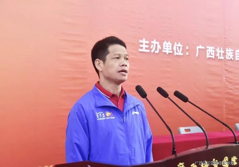 图为广西区体育局青少处蓝桂明调研员宣布开赛