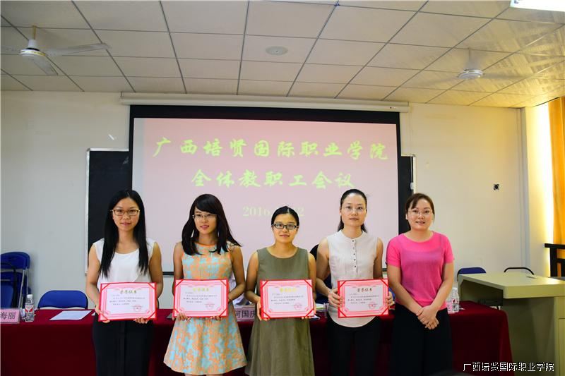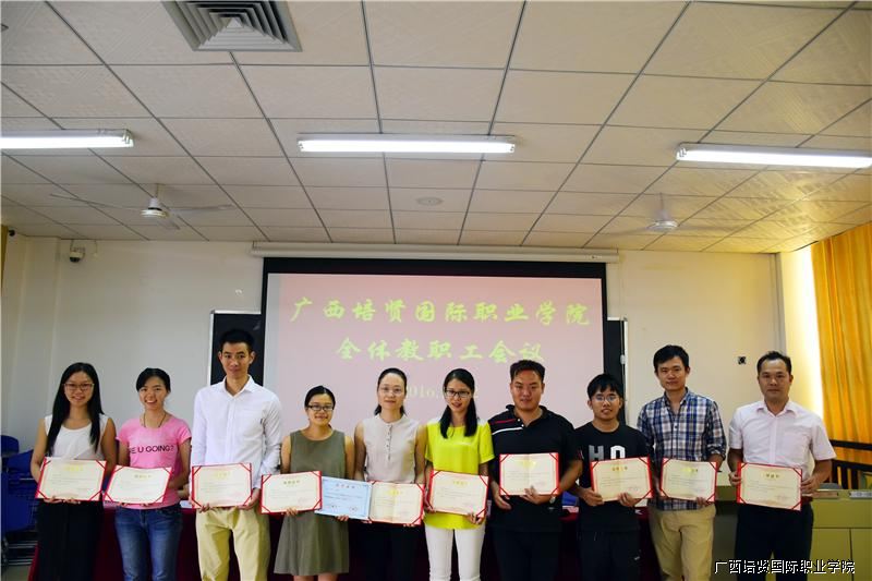 随后🤛🏻,人事处陈兰兰处长依次宣读了《2015—2016年春季学期教师公开课优秀教师名单》✥、《2016年广西职业院校技能大赛英语口语比赛优秀指导老师名单》以及《2016年全国大学生英语竞赛优秀指导老师、优秀组织老师名单》,学院招生办杜海丽主任、黄勇学院长助理和何国庆副院长分别为获奖教师颁奖🚀。