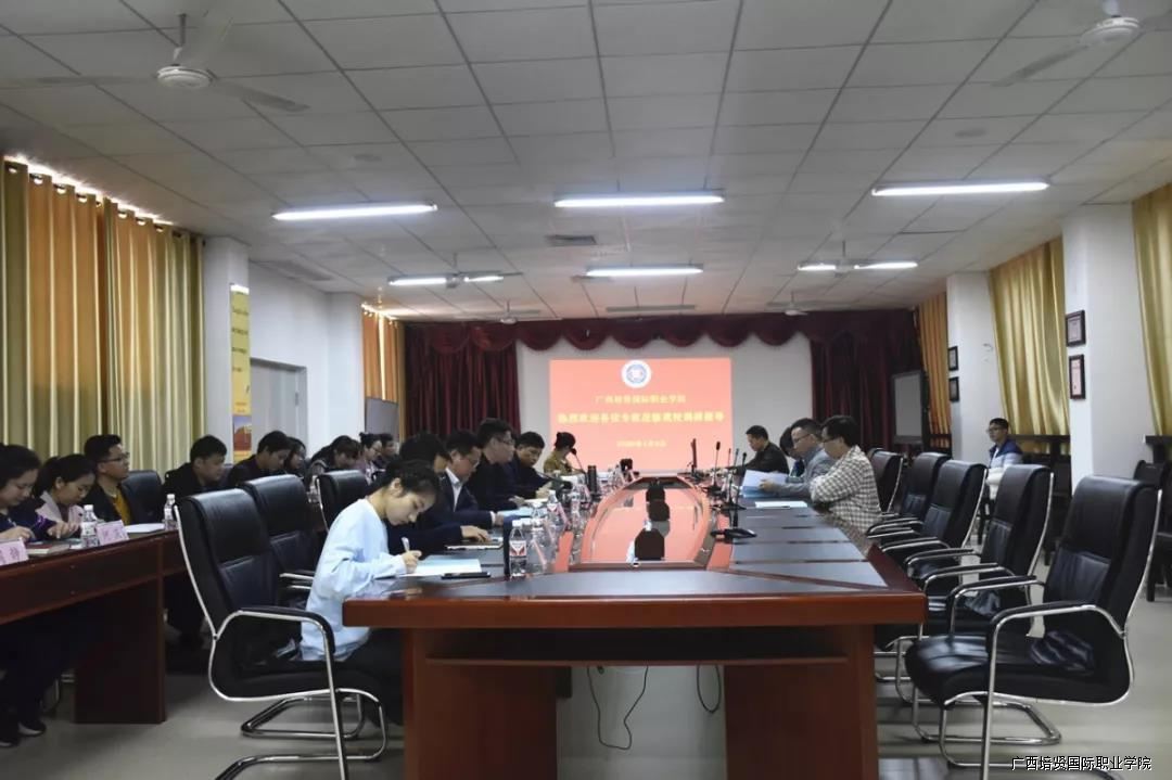 2020年1月6日,高职扩招专业调研组自治区教育厅职成处黄云奇副处长⚔️📰、广西工商职业技术学院阙勇平教授、广西农业职业技术学院杨凤敏教授🍙🐪,一行三人到我校进行指导工作⁉️👨🏼‍🔬,自治区督导专员、我校党委书记谭波教授,副校长黄勇学、于灏洋、李锡武等热情接待。
