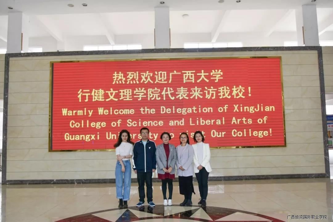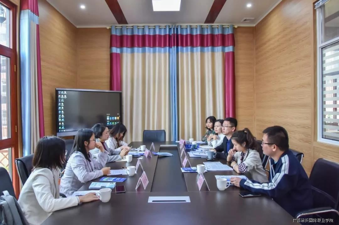 2020年1月9日下午,广西大学行健文理学院人文学部副部长宁静、商英教研室主任陈冰、商务英语教研室骨干教师韦金凤、人文学部辅导员张莹一行4人来访我校,就专业特色、师资队伍建设、人才培养模式等内容与我校开展座谈交流。