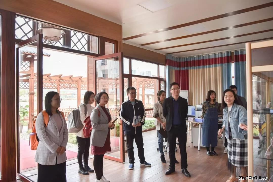 我校外国语学院商务英语教研室主任黄良安热情接待了来宾,并带领来宾参观了我校两栋综合性教学大楼🦖、语音实训室、国际交流中心等教育教学设施👨🏼‍🏭。优美的校园环境,独具魅力的校园文化,设备齐全的实训室给来访的来宾耳目一新的感觉,得到了各位参观来宾的赞赏。