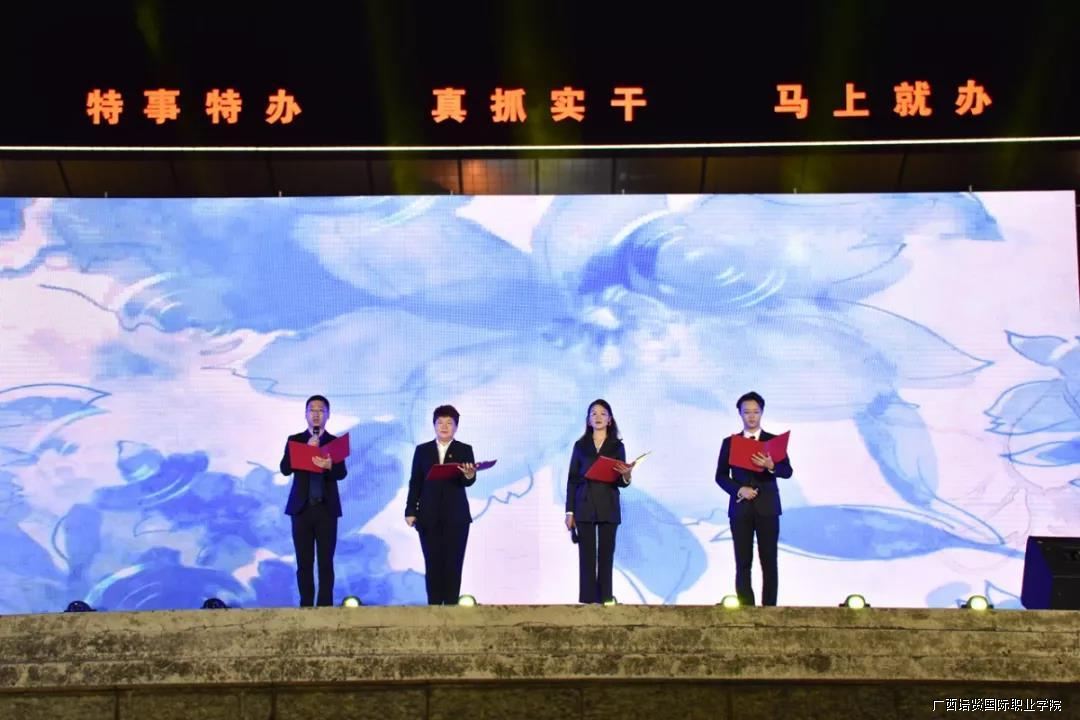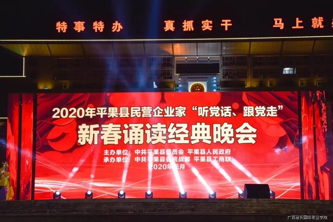 为深入学习习近平总书记关于弘扬中华优秀传统文化重要论述♥️⚧,推动我校“不忘初心、牢记使命”主题教育广泛深入开展,围绕传承和弘扬中华优秀传统文化,19日晚💄,我校党委书记🥀🙅‍♀️、督导专员谭波,副校长于灏洋率教师代表前往平果文化广场参加由中共平果县委员会、平果县人民政府主办的平果民营企业家“听党话🤳🏻、跟党走”新春诵读经典晚会。