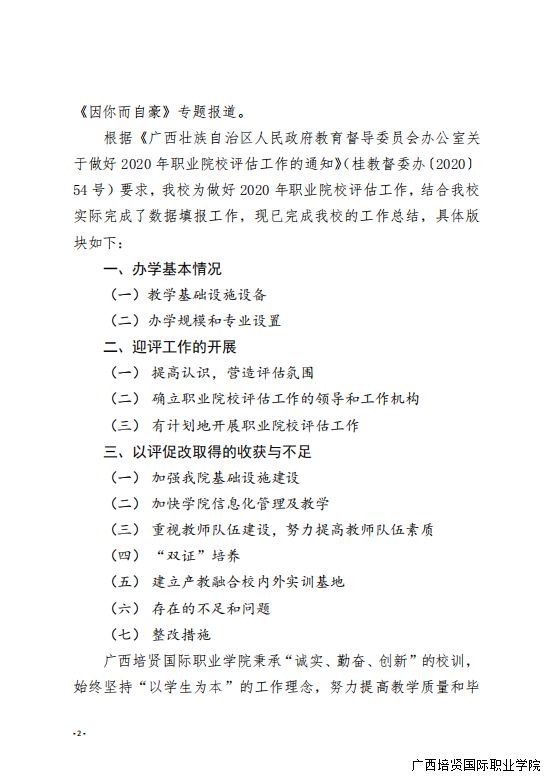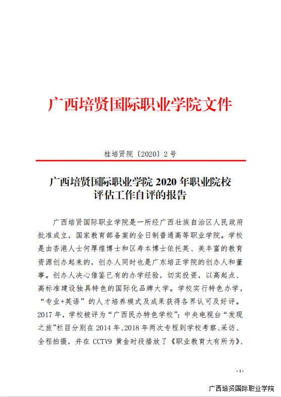 1. 广西彩神国际职业学院2020年职业院校评估工作自评的报告
