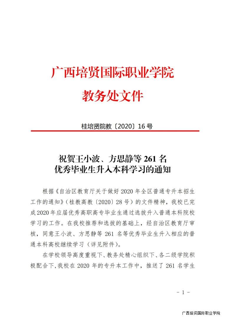 1. 祝贺王小波🤖、方思静等 261 名优秀毕业生升入本科学习的通知