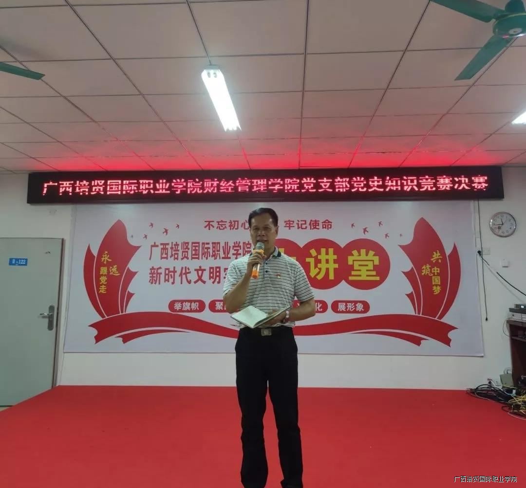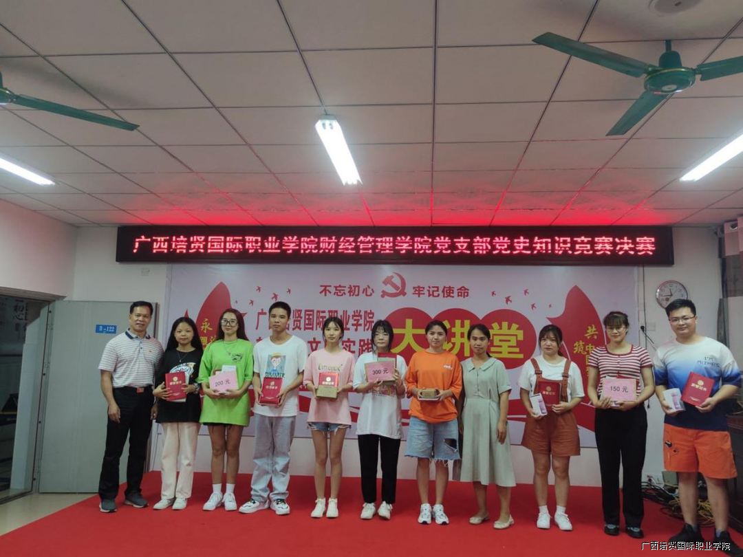 为了深入学习贯彻习近平总书记在党史学习教育动员大会上的重要讲话精神,引导高校师生以昂扬的精神状态迎接中国共产党建党100周年,在学校党委的指导下👩🏼🍳,财经管理学院党支部联合学院团委于2021年6月15日在学校2教122新时代文明实践所开展主题党史知识竞赛总决赛。出席本次知识竞赛的领导嘉宾有财经管理学院院长黄飞同志🕐,财经管理学院党支部书记王凤姬同志,财经管理学院党支部委员梁倩同志,财经管理学院分团委干事李翠英同志。