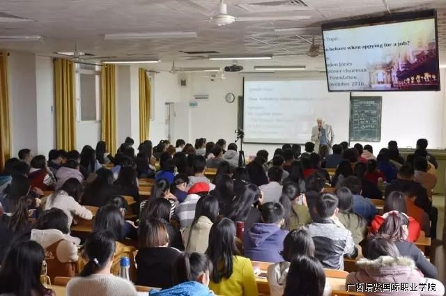 2016年𓀋,我校特邀英国ABE前任基金会主席Mr.Lyndon Johns举办“How to behave when applying for a job”特别讲座