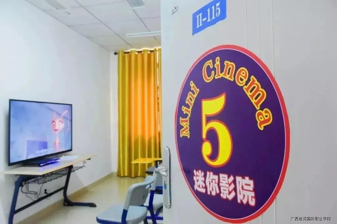 学生们可选修迷你影院课程🙇🏿♂️,选择一些自己感兴趣的学科光碟,可约上四五位朋友,一起来迷你影院看英文电影或英文纪录片锻炼自己的英语听说能力。