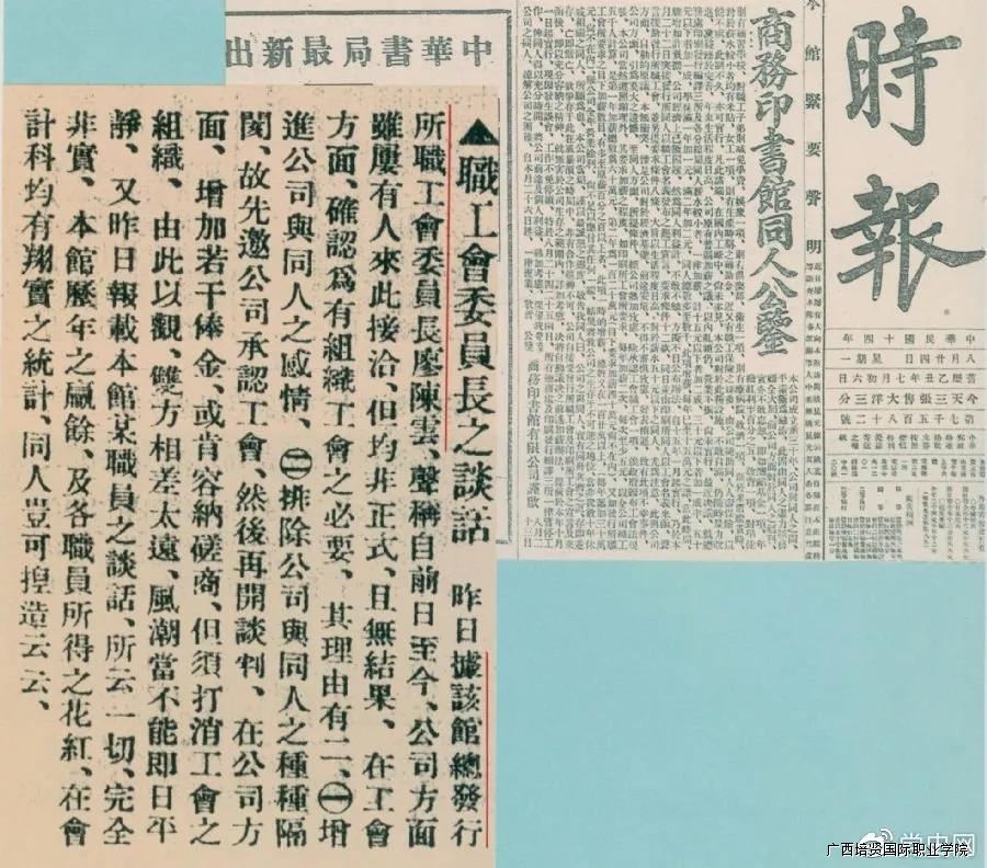 1925年8月24日,上海《时报》刊载的陈云在商务印书馆大罢工第二天发表关于争取组织工会自由作为取得这次罢工斗争胜利的最基本条件的谈话。