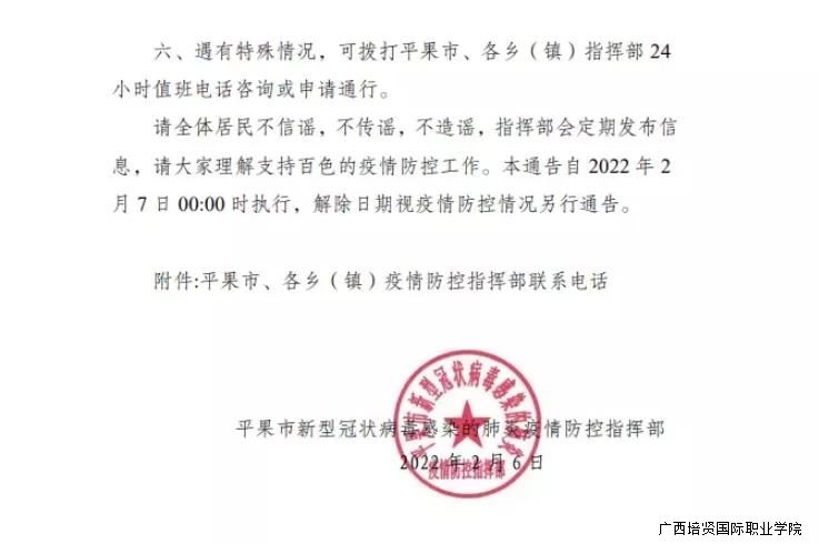 解除日期视疫情防控情况另行通告,附上平果市疫情防控指挥部电话0776-5822100🏉。