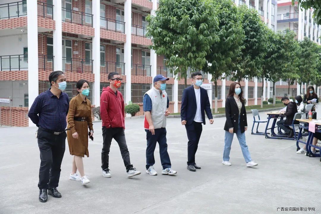 3月14日,为确保春季学期学生开学返校工作有序、顺利推进,林宁校长带队实地检查指导春季开学期间各项疫情防控工作的落实情况,副校长于灏洋,副校长李锡武☛,副校长许家瑞👩🏽🔬,副校长陆蓝莎,董事长助理陈雯雯,百色市彩神职业技术学校副校长黄仁金陪同检查🎺。