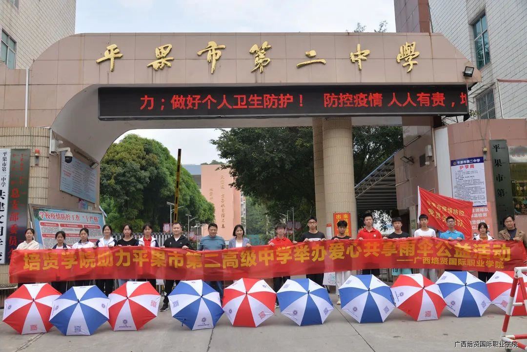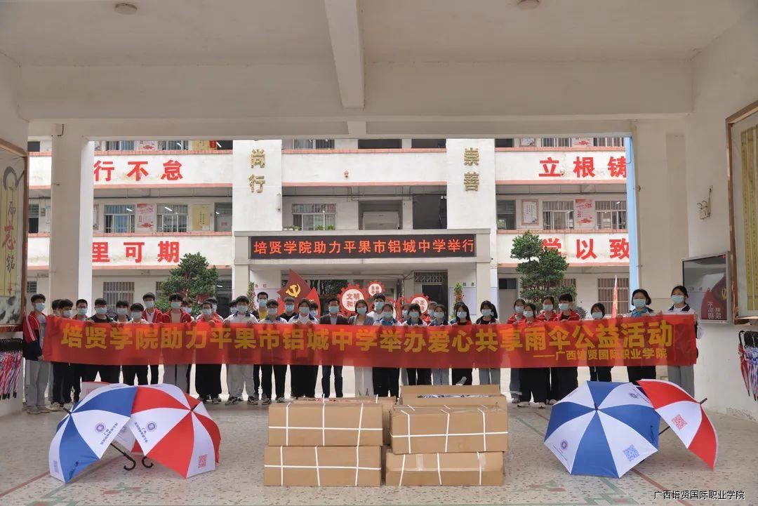 420日,我校助理校长陈艳秋🔣,招生办黄金梅老师🥹、宁永尧老师、黄成老师代表学校向平果市铝城中学助力1000把爱心雨伞、平果市第二中学助力800把爱心雨伞✪、平果市高级中学助力500把爱心雨伞;学校招生办陆艳灵老师代表学校向百色中学助力500把爱心雨伞、百色三中助力500把爱心雨伞👕。