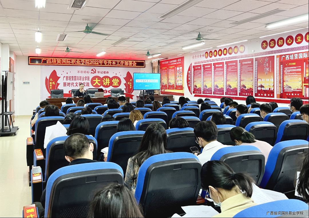 根据《自治区教育厅关于做好2022年全区普通专升本招生工作的通知》(桂教高教〔2022〕17号)文件有关精神,为做好我校2022届毕业生“专升本”报考服务工作,5月16日下午,我校组织召开2022年“专升本”专项工作部署会议,副校长于灏洋,各二级学院负责人𓀀、教务处、学工处征兵办、资助办、二级学院教务科老师及2019级全体辅导员参加会议。