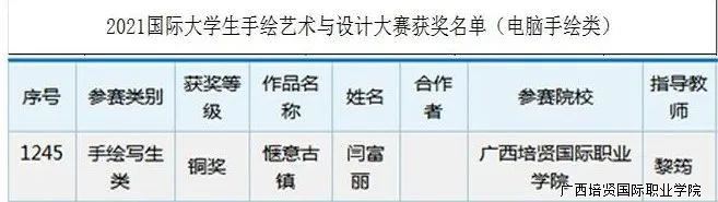 2021年国际大学生手绘艺术与设计大赛成绩揭晓👨🏿🔧🤷🏽♀️,广西彩神国际职业学院艺术工程学院学生参赛作品喜获佳绩。