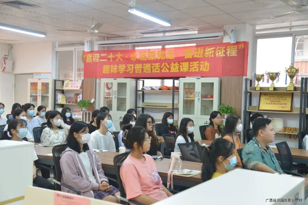 2022 年中国共产党即将召开第二十次全国代表大会,这是包括广大青少年在内的全党全国各族人民政治生活中的一件大事。迎接和学习宣传贯彻党的二十大,是贯穿全年的工作主线。为了进一步增强全体同学的语言规范意识和推广普通话参与意识,促进推广普通话和语言文字规范化工作不断深入,以营造与和谐社会相适应的和谐语言生活为目标,积极引导全校同学树立科学的语言观,扎实提高同学们说普通话,让同学们明白语言中的乐趣。特此举办趣味学习普通话公益课活动。