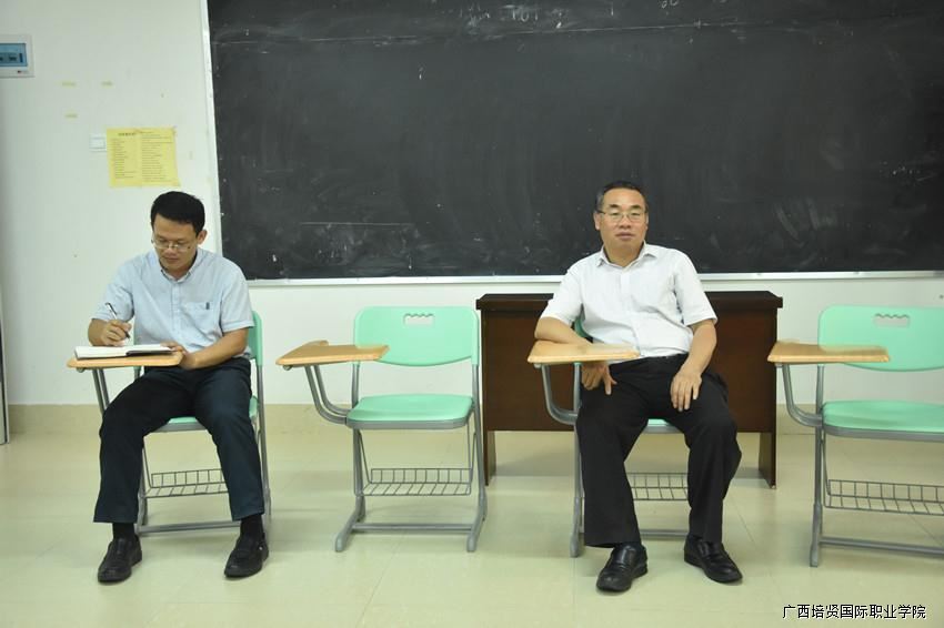 广西农业职业学院校长杨昌鹏(右)🤥,费汝海同志(左)与我院老师进行座谈