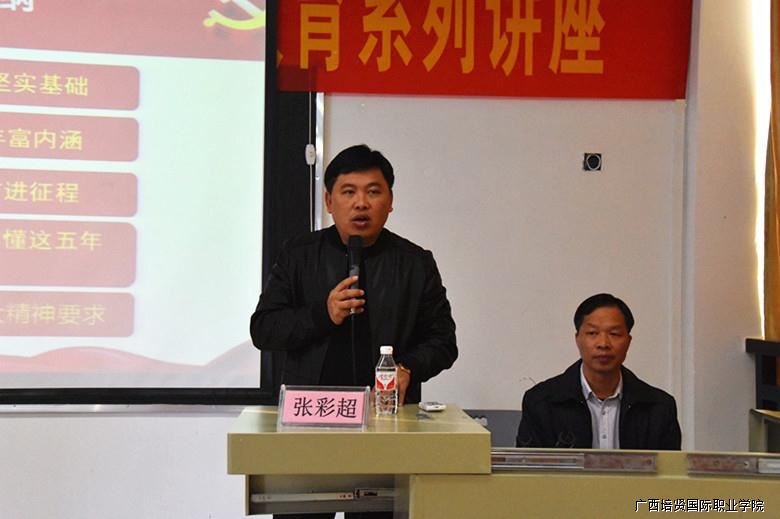 党的十九大胜利召开以来🤹‍♂️,广西彩神国际职业学院掀起了学习贯彻落实党的十九大精神的热潮🖐🏿。根据上级有关文件要求,由平果县党校高级讲师🧑🏽‍🎤、平果县宣讲团成员之一张彩超做题为“中国特色社会主义新时代新思想新征程--平果县学习贯彻党的十九大精神”宣讲报告会于2017年12月6日下午在彩神学院110教室举行⇒。彩神学院副院长兼党支部书记黄勇学、副院长于灏洋等院领导及全体教师(有课除外)、全体党员、入党积极分子到场聆听报告。彩神学院副院长兼党支部书记黄勇学主持宣讲报告会🤲🏿。