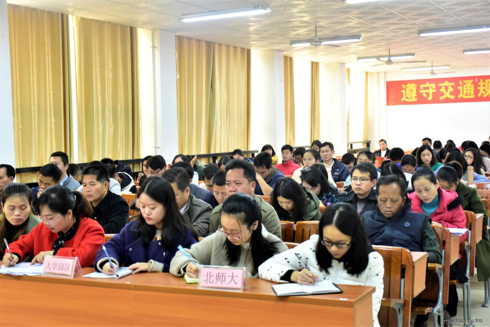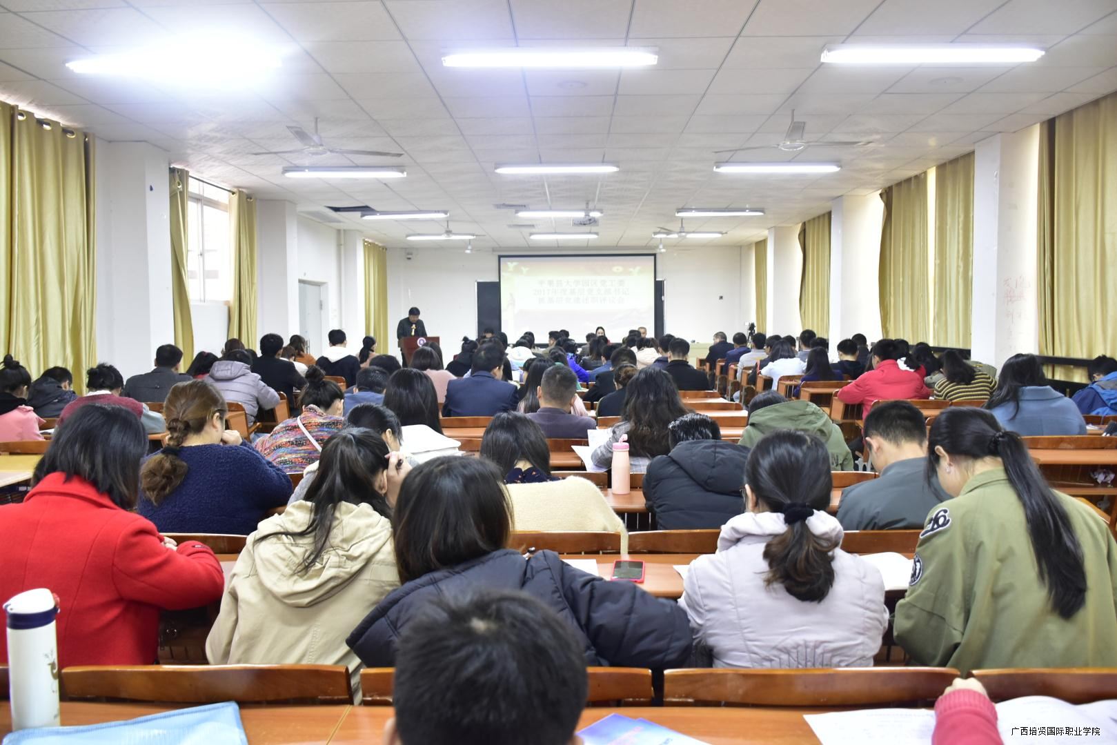 根据县委组织部工作部署,平果县大学园区于2018年1月22日在我院110教室召开2017年度基层党支部书记抓基层党建述职评议会。平果大学园区管委会主任杨敏捷👨‍👨‍👧‍👧、平果大学园区管委会副主任罗永林、中共平果县大学园区工委专职副书记黄华婷、北师大平果附校党支部书记高庆海及党员代表、学院副院长兼党支部书记黄勇学等院领导及全体教师🙆🏿‍♀️、党员参加会议🩰。