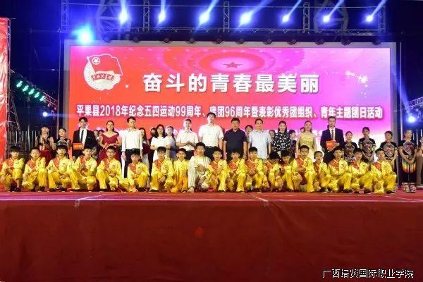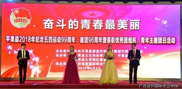 为纪念“五四”运动99周年👨‍🍼,弘扬“爱国🚙、进步、民族⏸、科学”的五四精神,中共平果县委宣传部、共青团平果县委员会于5月4日(星期五)晚在我院隆重举办主题为“奋斗的青春最美丽”纪念“五四“运动99周年暨优秀青年、团组织表彰晚会。