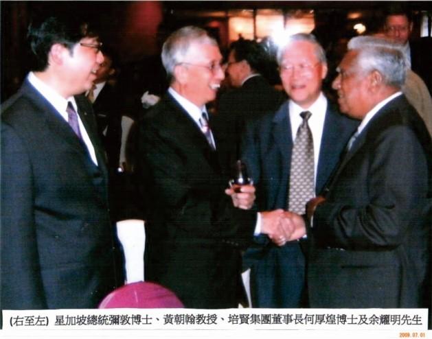 新加坡总体弥敦博士、黄朝翰教授、学校董事长何厚煌博士🧔🏿♀️、余耀明先生会谈