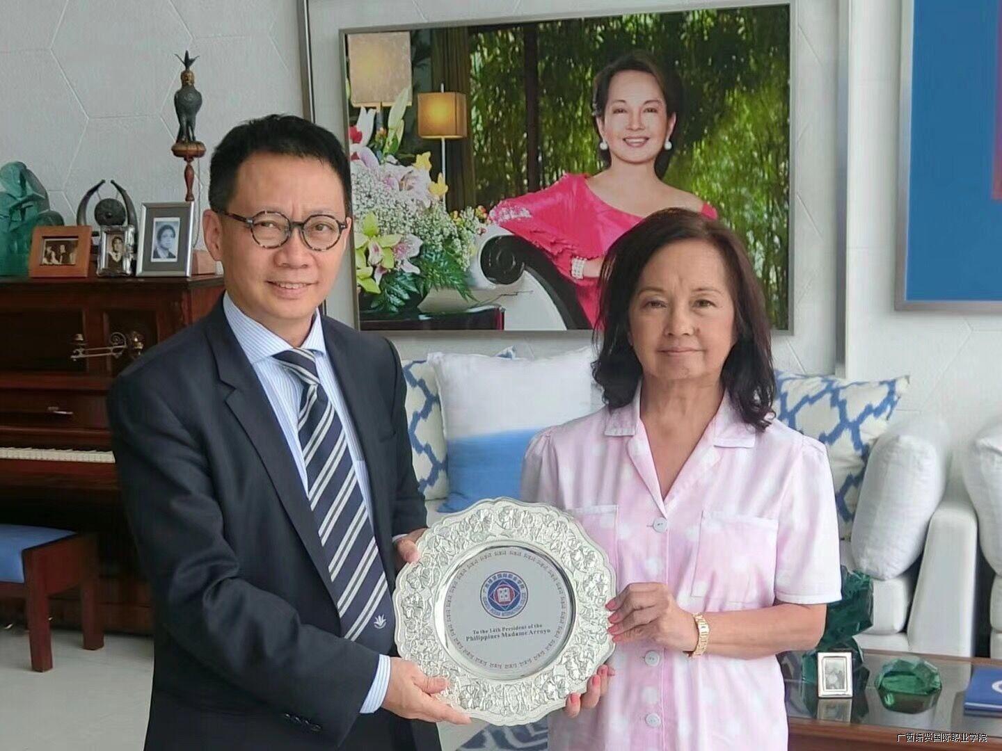 2018年3月10日,学校名誉董事林健忠博士拜会菲律宾前总统阿罗约夫人并赠送彩神纪念银碟。