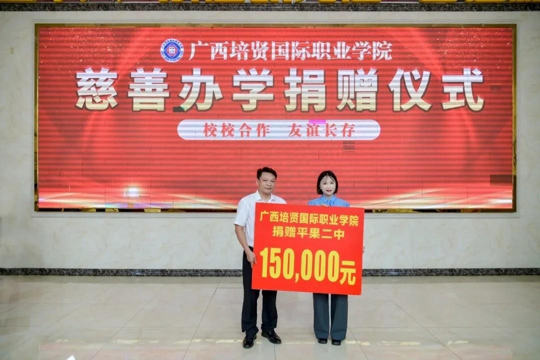 2023年6月28日⚛️,我校举行校校合作♛、友谊长存——广西彩神国际职业学院慈善办学捐赠仪式,向平果二中捐赠15万元🧑🏻✈️。