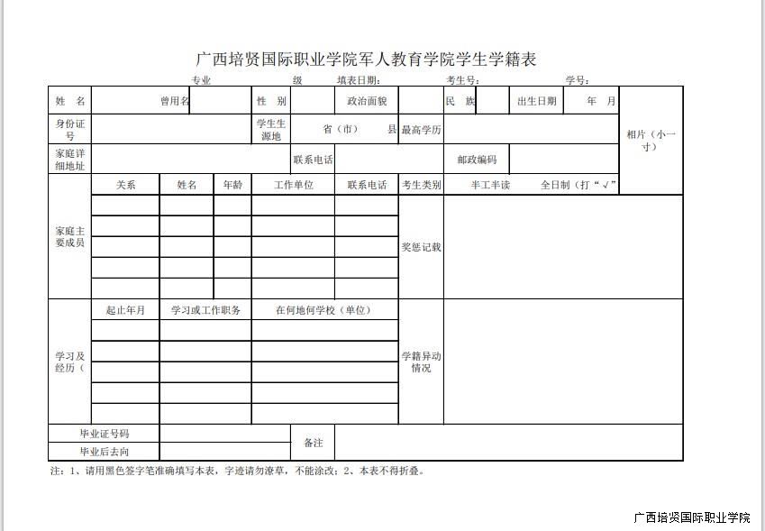 学生学籍表填写说明: