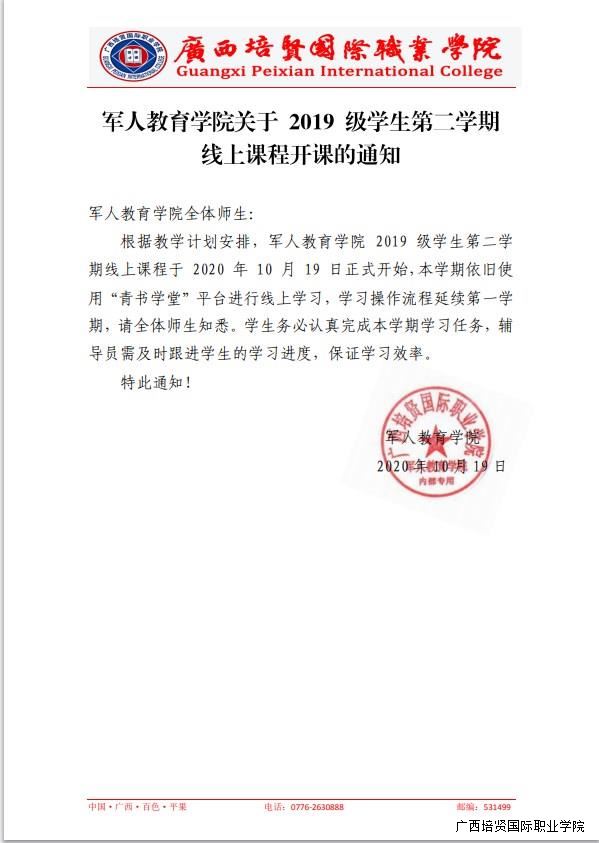 1. 关于军人教育学院 2019 级学生第二学期线上课程开课的通知