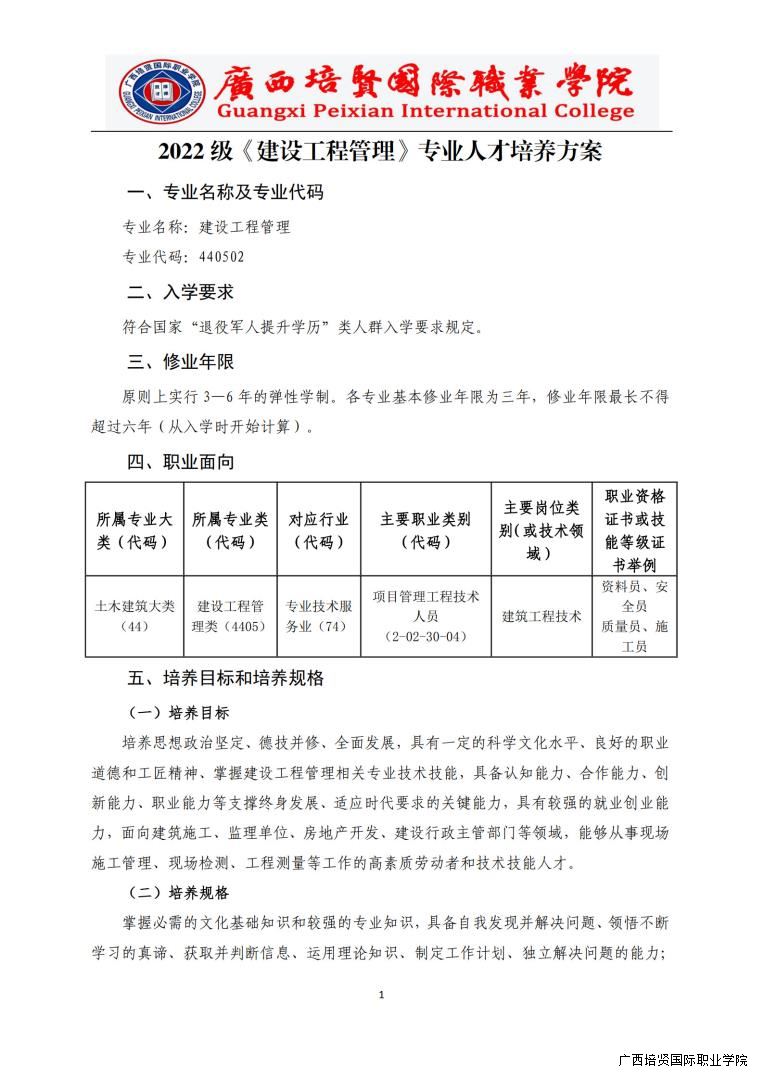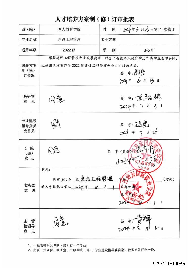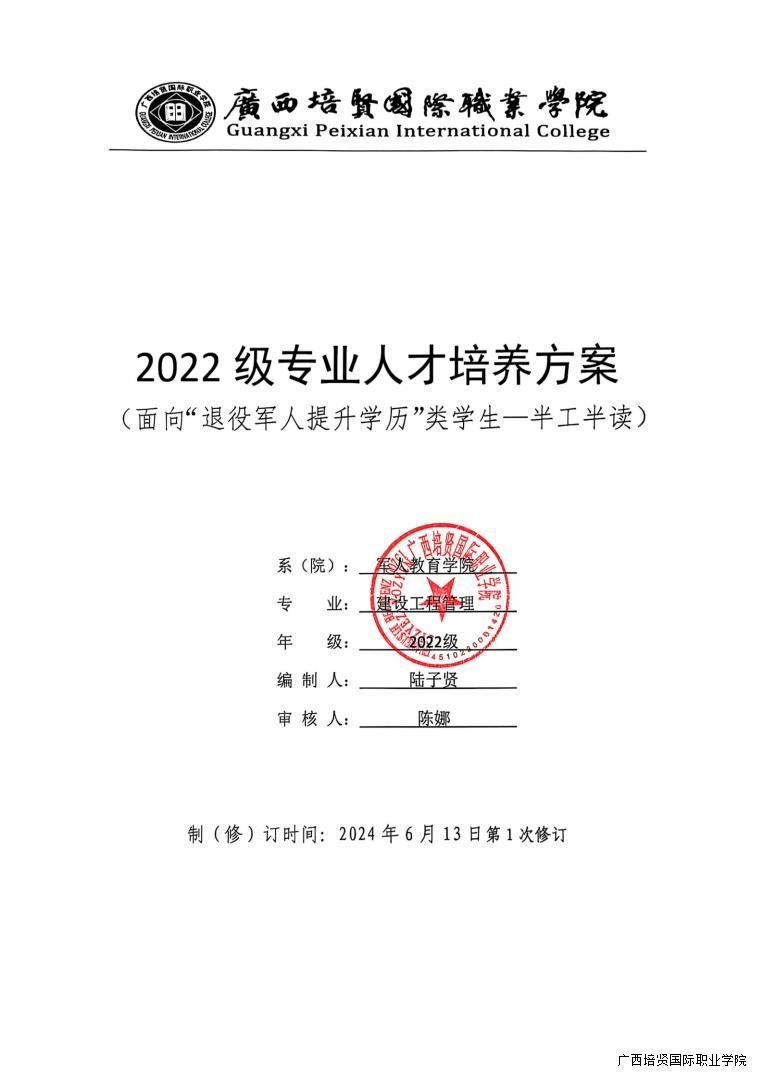 1. 广西彩神国际职业学院军人教育学院2022级建设工程管理专业人才培养方案(半工半读)