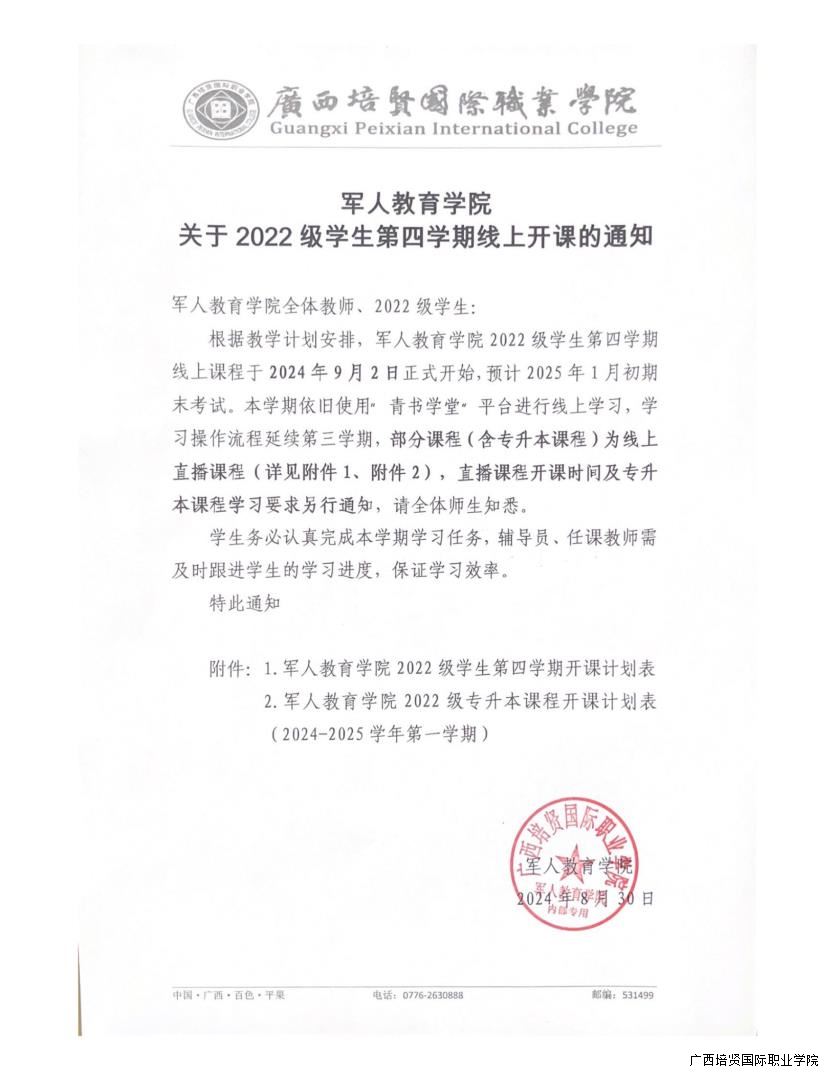 军人教育学院关于2022级学生第五学期线上开课的通知