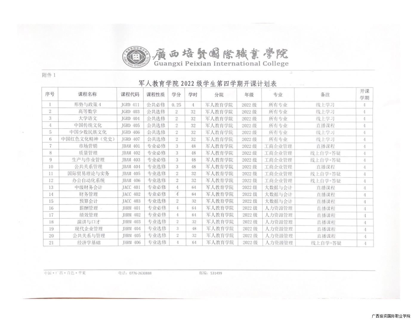 军人教育学院关于2022级学生第四学期线上开课的通知
