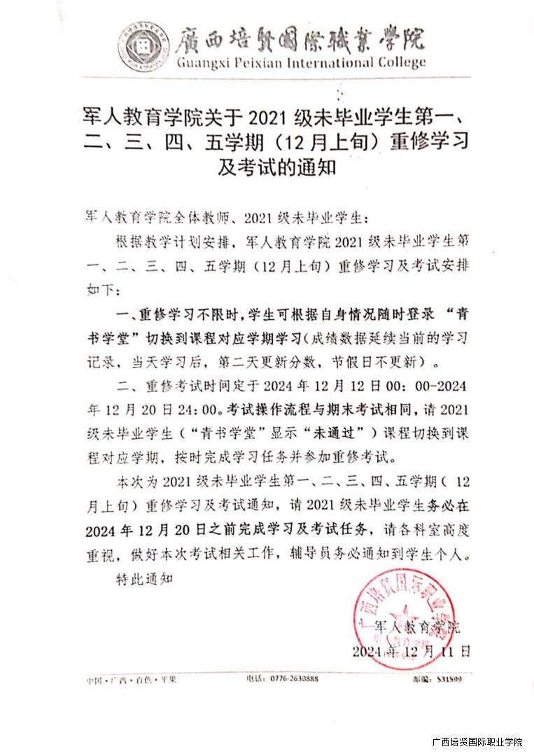 上一篇:军人教育学院关于2021级未毕业学生第一、 二🫂、三、四、五学期(11月份下旬)重修学 习及考试的通知