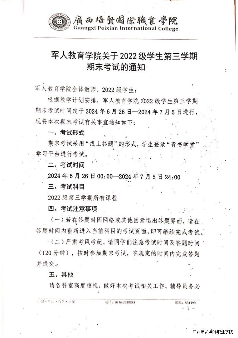 1. 军人教育学院关于2022级学生第三学期期末考试的通知