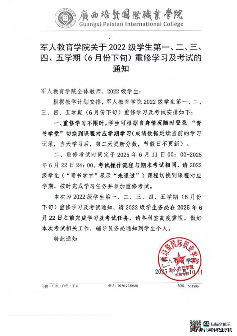 上一篇👪:军人教育学院关于2022级学生第一🎙、二🌟、三、四学期(4月份下旬)重修学习及考试的通知
